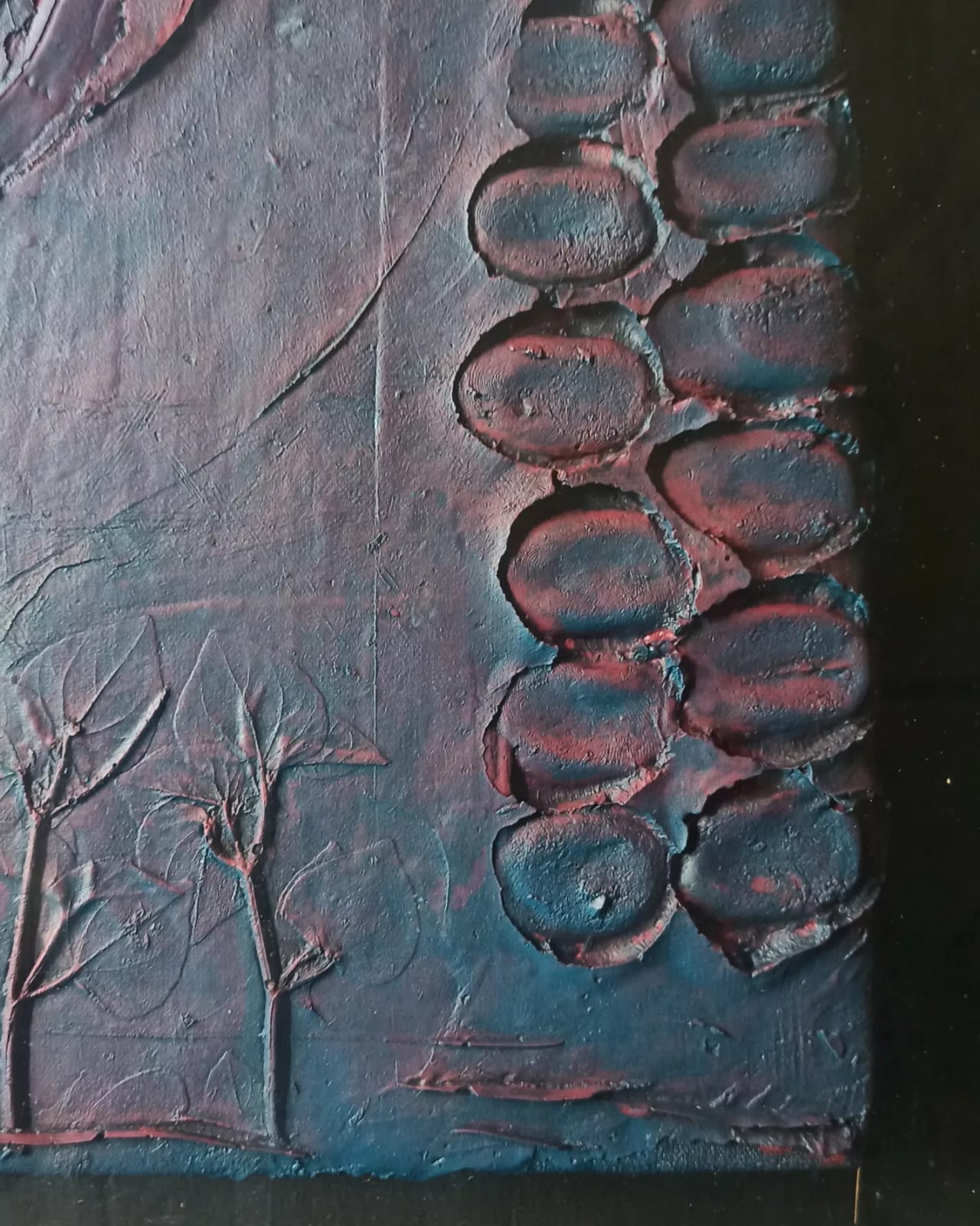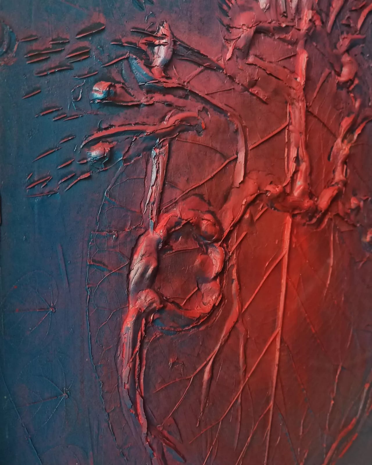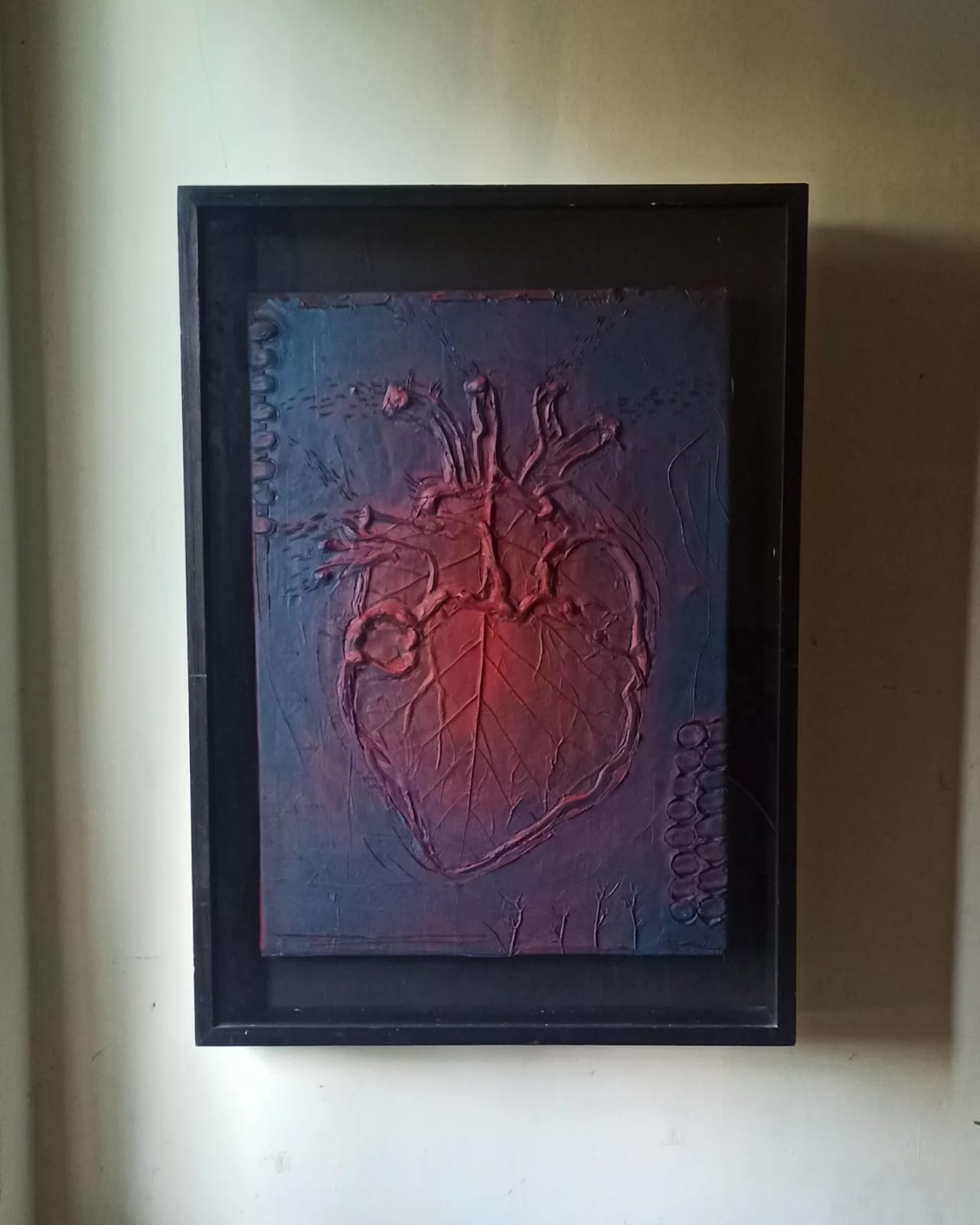 Karya “Heart” ini bagaikan peta luka yang membara: relief tekstur hati tergurat tajam, dipenuhi merah mendalam yang menyiratkan emosi terkhianati. Garis-garis dan tonasi merah meneteskan kesedihan dan kemarahan, tapi juga kekuatan—sebuah denyut batin yang menolak padam. Di saat hatimu retak oleh pengkhianatan, karya ini malah menegaskan: meski terluka, tetap ada keberanian untuk merasa, berdiri, dan mungkin, memaafkan. Ini bukan sekadar perasaan, melainkan monumen pribadi yang berani berbicara soal patah dan kelahiran kembali.